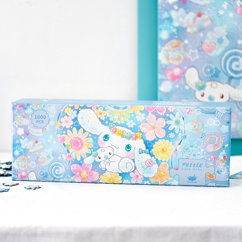 Big Ear Dog-Sweet Party (excluding puzzle frame) Sweet Party Sky Blue Floating Frame (No Glass) 1000 Piece Puzzle Blanket Set (Thickened)