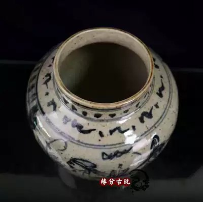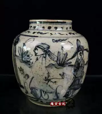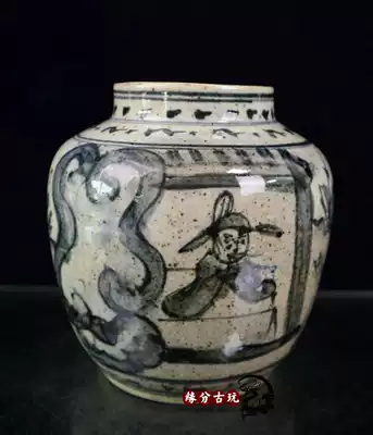 Ming blue and white figure figure cylinder jar Thrift antique antique porcelain ornaments Folk collection Classical home decoration