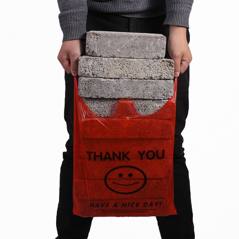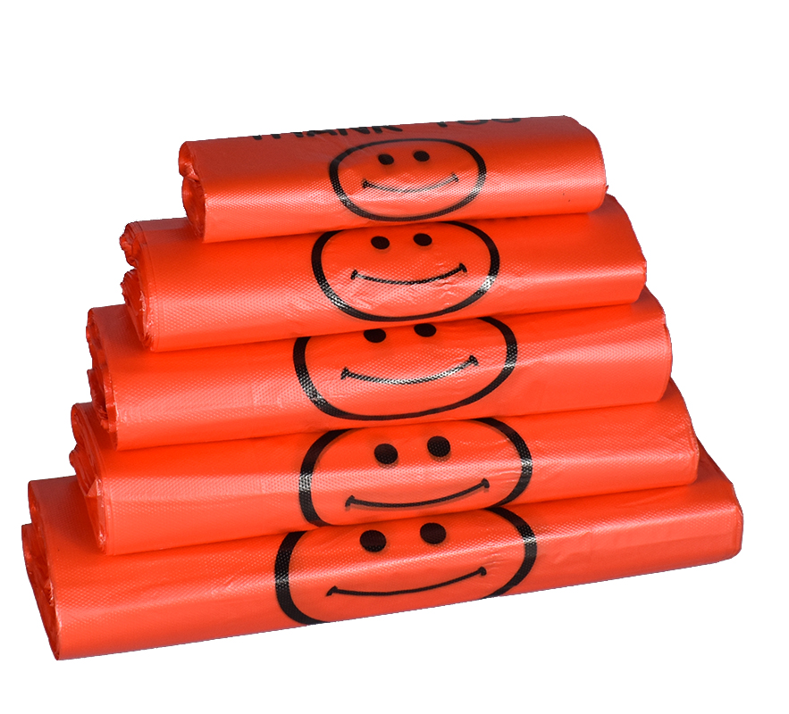 Thickened red smiling face plastic bag Back to heart bag custom made logos shopping bag Gift fruit plastic bag Hand
