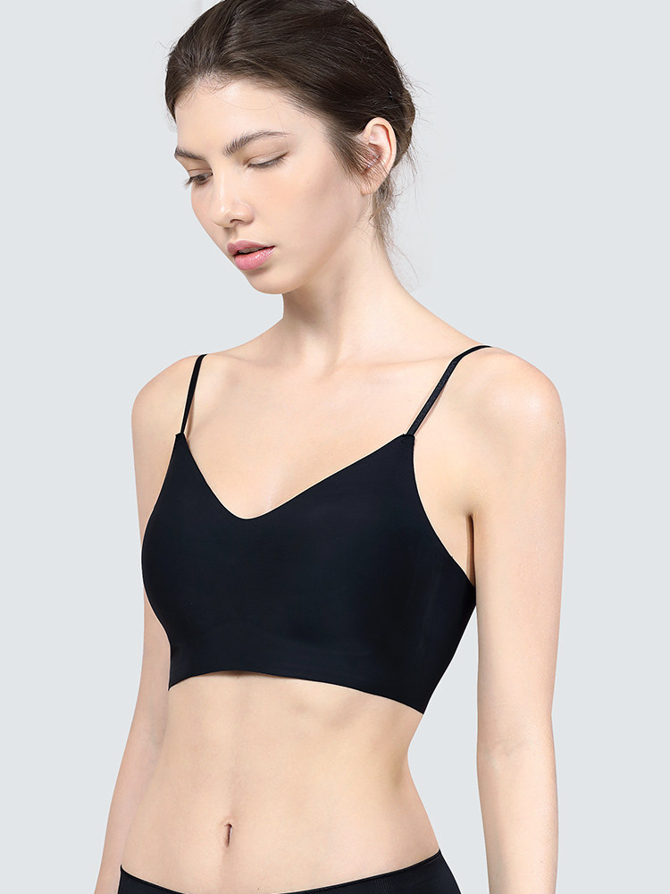 Breasted woman without steel ring bra deep V beauty back ultra-thin and anti-walking light No marks and no marks in the bottom lap wrap chest underwear