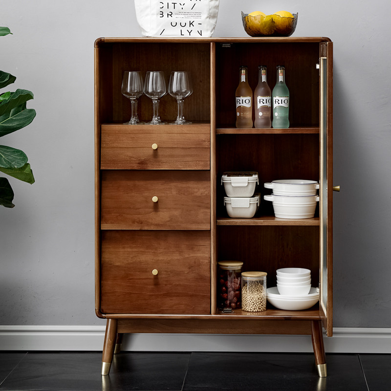 Full solid wood dining cabinet minimalist modern tea water cabinet multifunction kitchen cabinet integrated by wall Home Bowl Tray Cabinet Side Cabinet