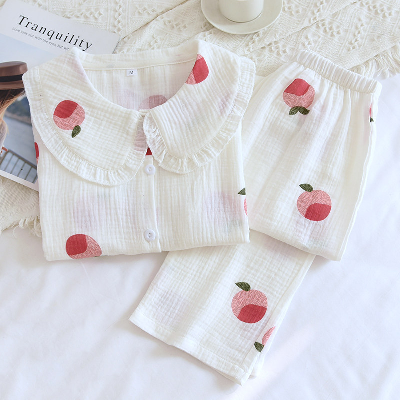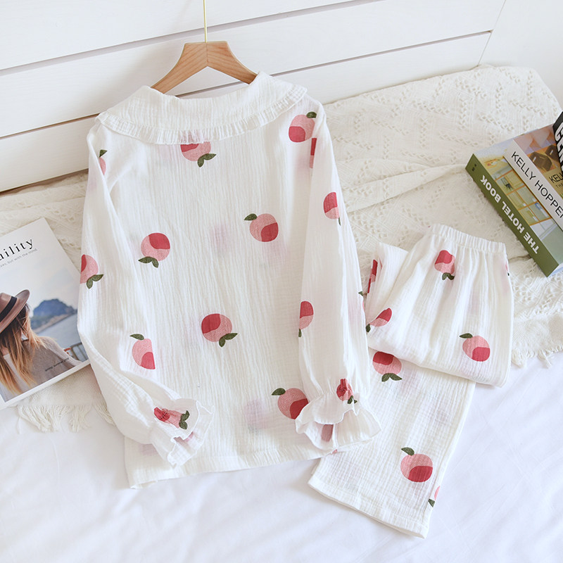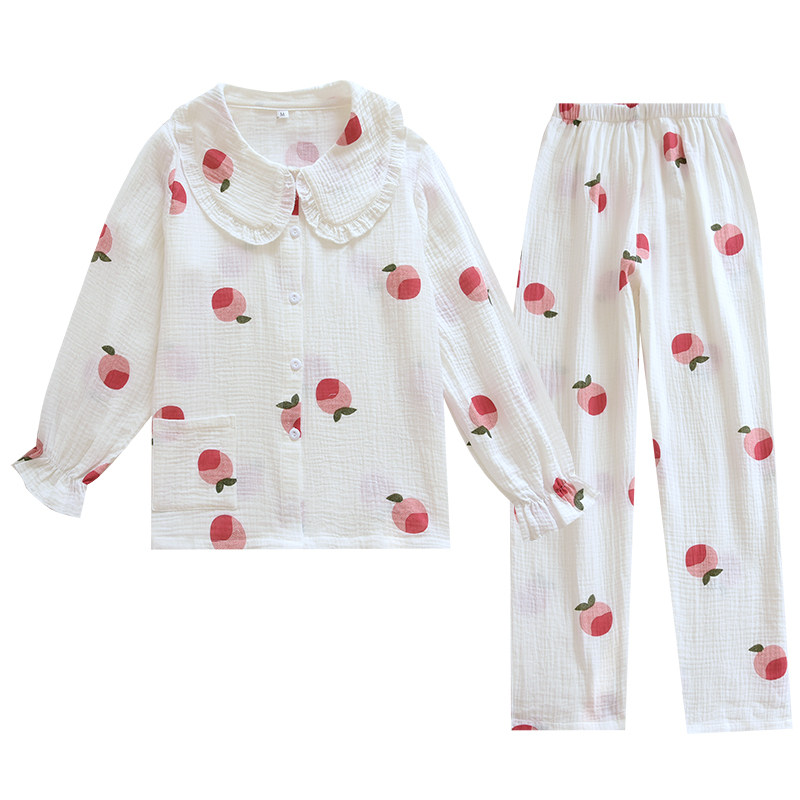 Spring Autumn Pure Cotton Female Pyjamas Korean version Fresh printing Long sleeves Home clothes Young students Loose Thin-to-Flap Suit
