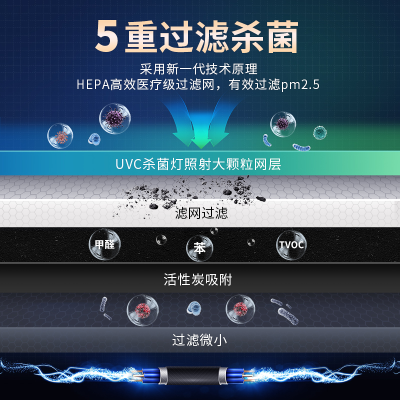 HEPA filter Activated carbon Plasma Ozone Negative ion Electrostatic adsorption