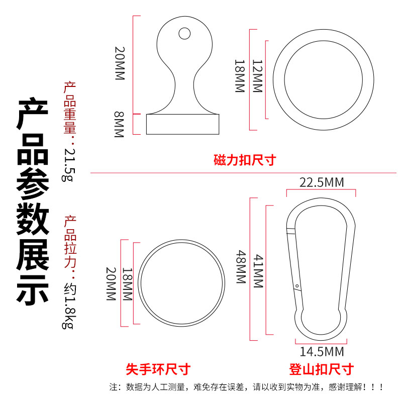 Multifunctional Luya Magnetic Buckle Strong Magnetic Suction Hanging Buckle Luya Supplies Outdoor Mountaineering Fishing Wireless Lost Rope Fishing Gear