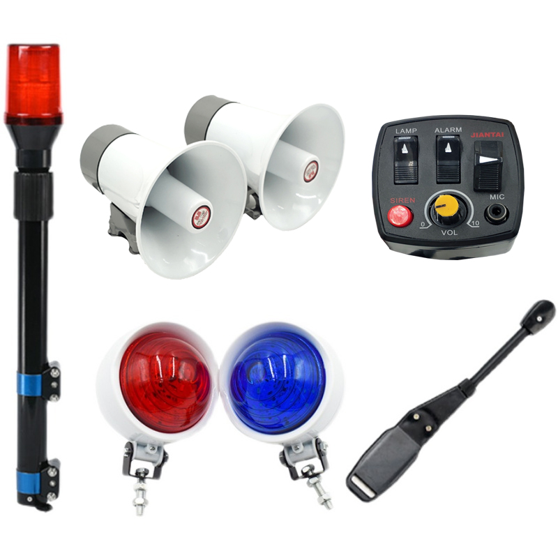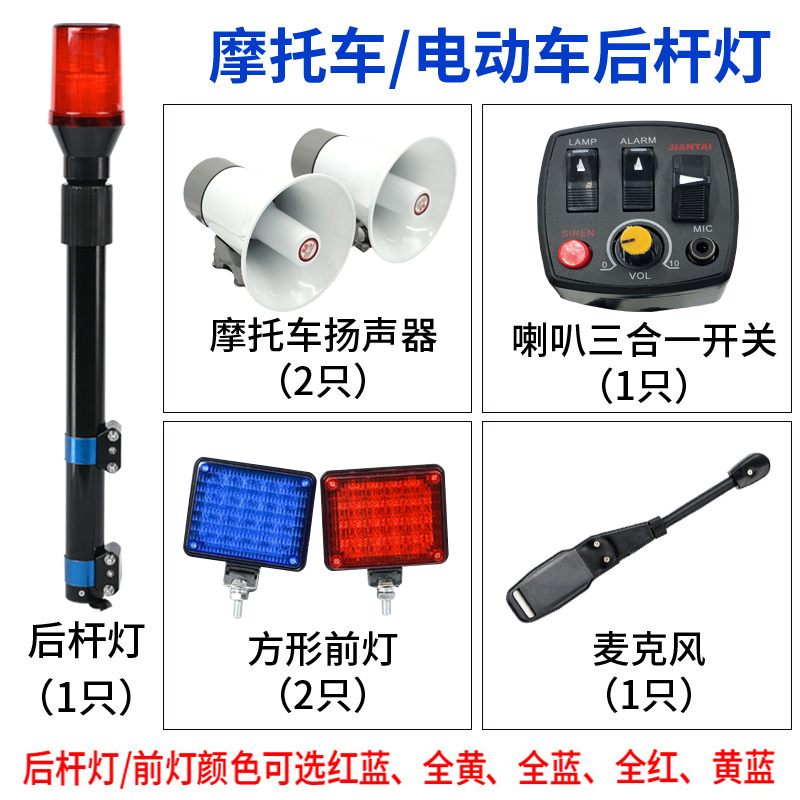 Motorcycle patrol alarm flash light three-in-one horn alarm caller modified rear pole red and blue glare warning light