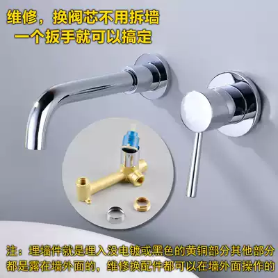 Simple household bathroom powder room washbasin all copper material concealed hot and cold water in the wall embedded faucet