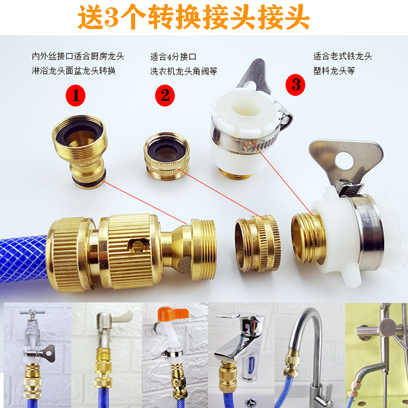Faucet universal copper snap joint extension hose wash car watering pipe balcony toilet flush universal extension pipe