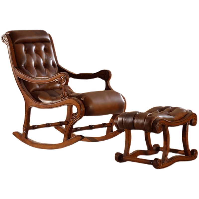 American-style solid wood leather rocking chair European-style retro chair recliner lazy sleeping chair lunch break chair leisure chair rocking chair