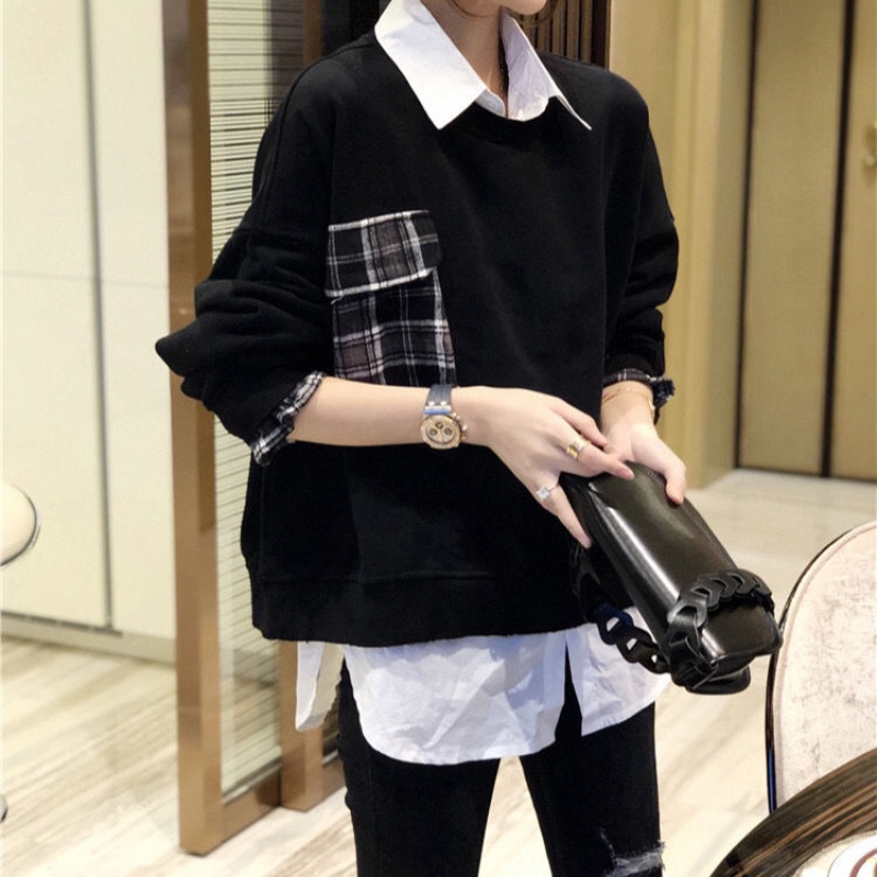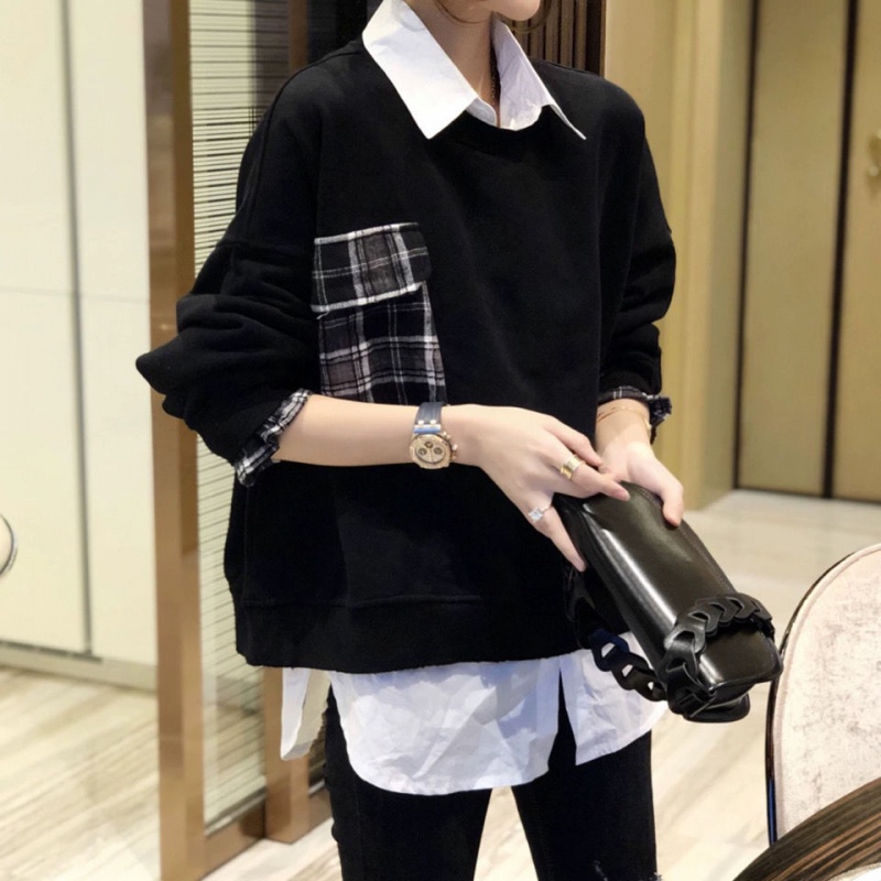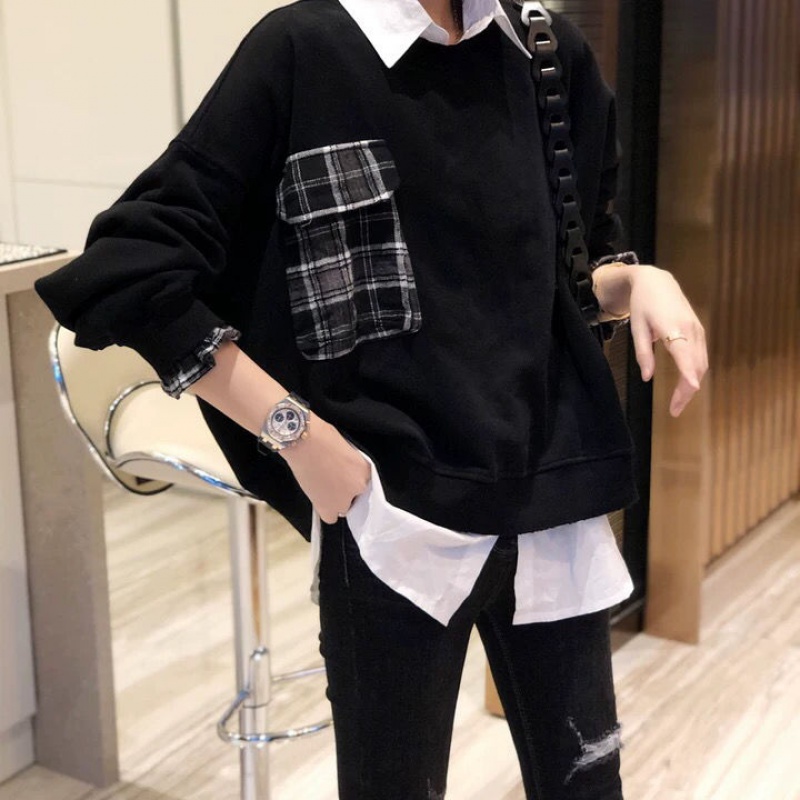 Foreign Pie Plaid Pocket Outside of the Dress Woman Fake two Long sleeves Loose Jacket Autumn Winter Clothing 2020 New