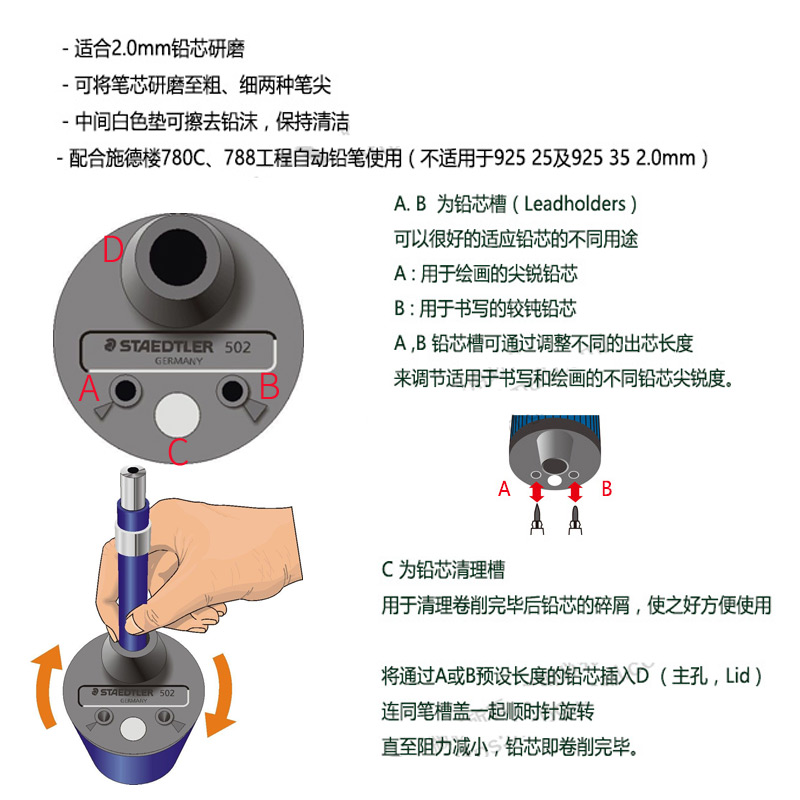 Staedtler Staedtler 2 0mm sharpener Pencil sharpener lead core Pen sharpener 3 15 refill planer pen knife Portable 780C movable drawing 788 mechanical pencil coarse core