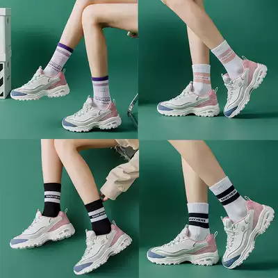 6 pairs of trendy brand women's cotton contrast stripes letter pink fashion women's tube socks sports socks women's socks