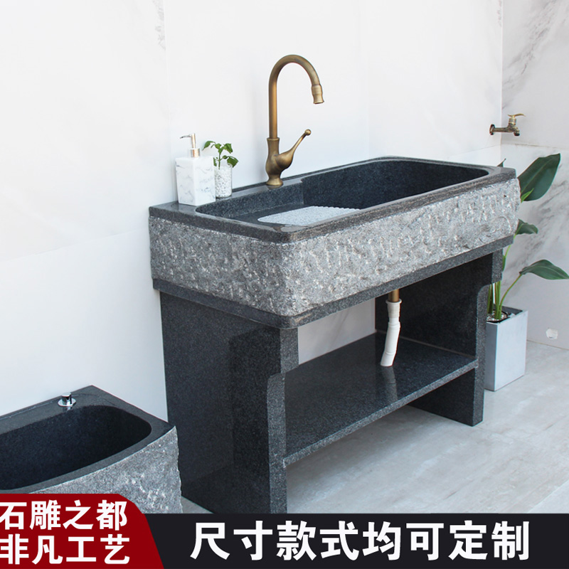 Balcony home laundry pool outdoor wash basin outdoor courtyard stone sink integrated with washboard marble table