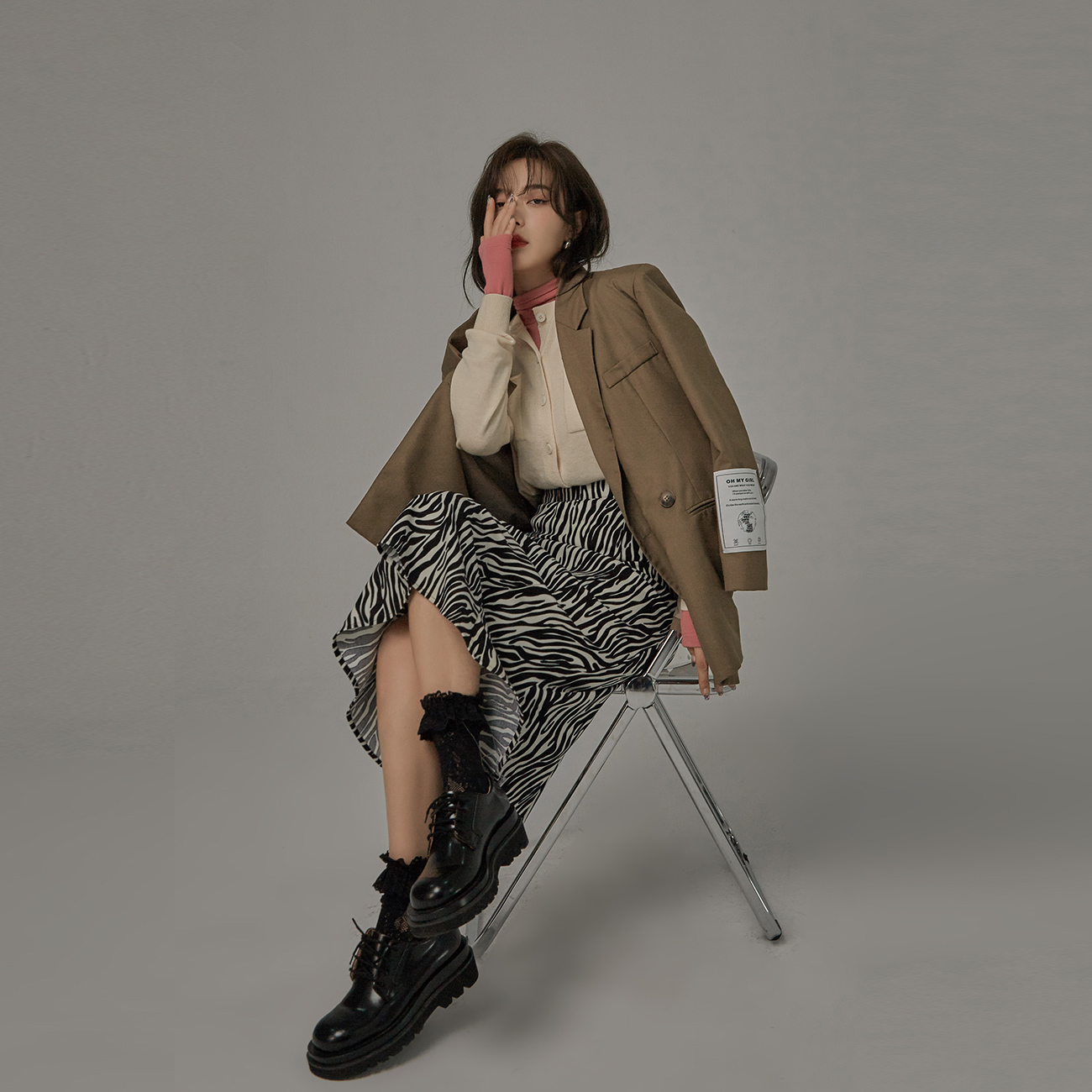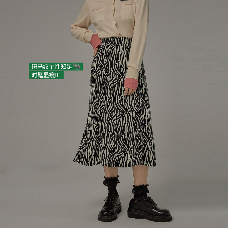 CHUU small zebra half-body dress 2022 spring new retro temperament high waist display slim medium long version A-character dress