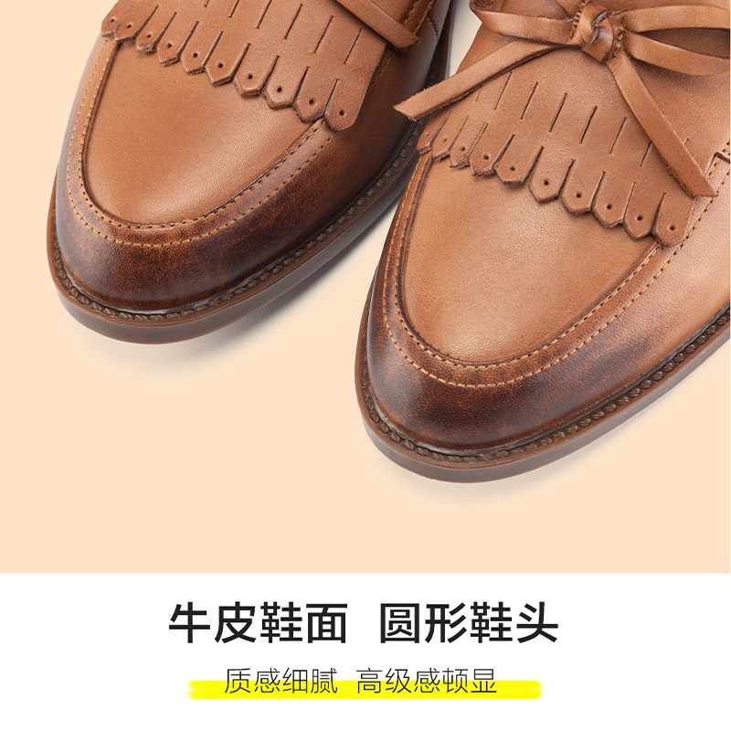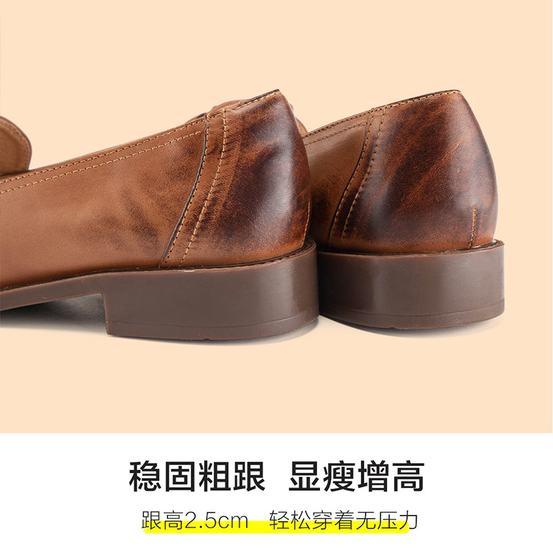 Get Oona brown Stream Sullefoe shoes 2021 Spring genuine leather One foot Pedal Small Leather Shoes Butterfly Knot Lady Flat flat shoes