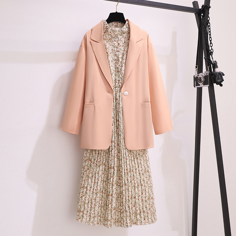 2022 autumn large size women's clothing fat sister floral dress is thin and high-end fried street suit jacket suit