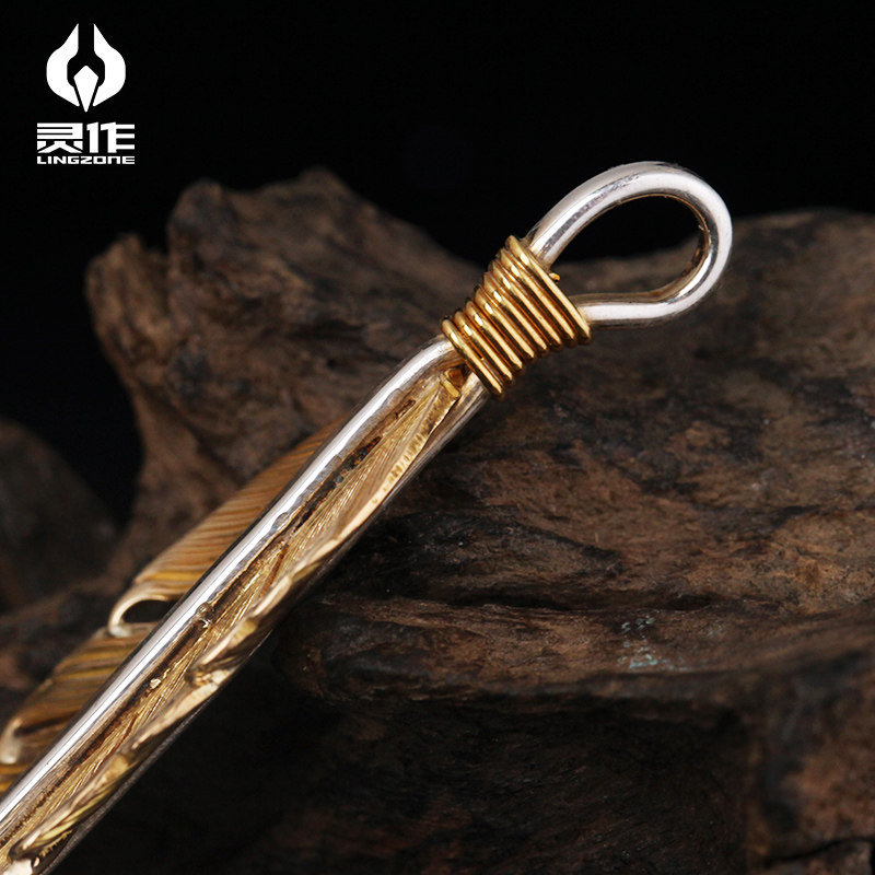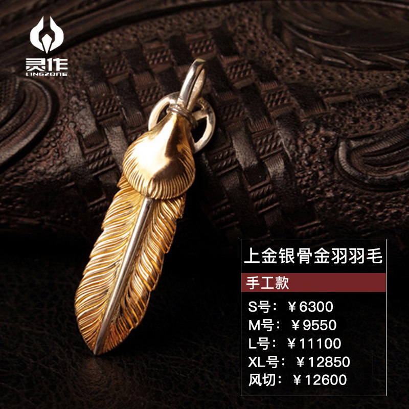 Spirit for silver accessories Dog bear dad Handbeat style silver bone gold plume series pure silver 18K gold personality Fashion pendant