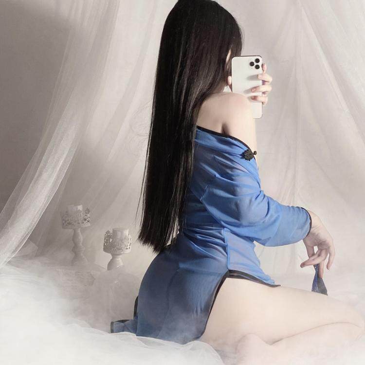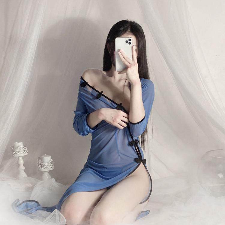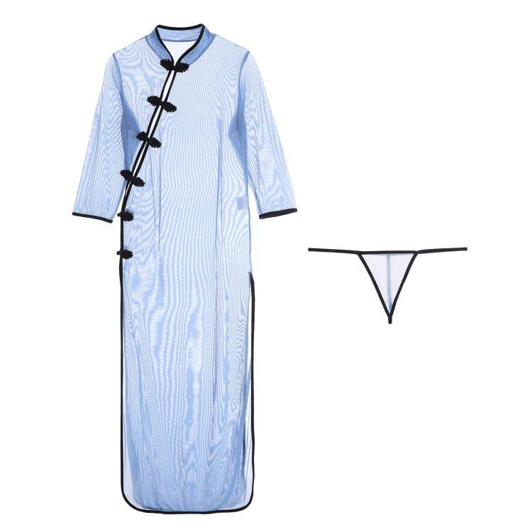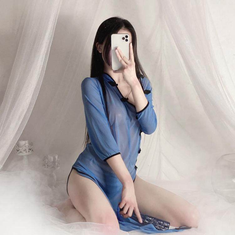 Blue (qipao long dress T-pants) sexy qipao female police uniform sexy qipao maid suit sexy qipao clear student sexy qipao seductive pyjamas Sexy Qipao Enchantment Pyjamas pyjamas Sexy Qipao