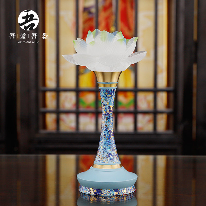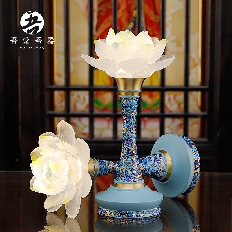 Pure copper enamel color offering lamp Indoor household Buddha special long-bright lamp Buddha offering lamp Buddha supplies