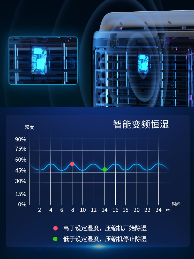 Purification and dehumidification (4 liters water tank) External water pipe Purification and dehumidification (4 liters water tank) APP remote intelligent control