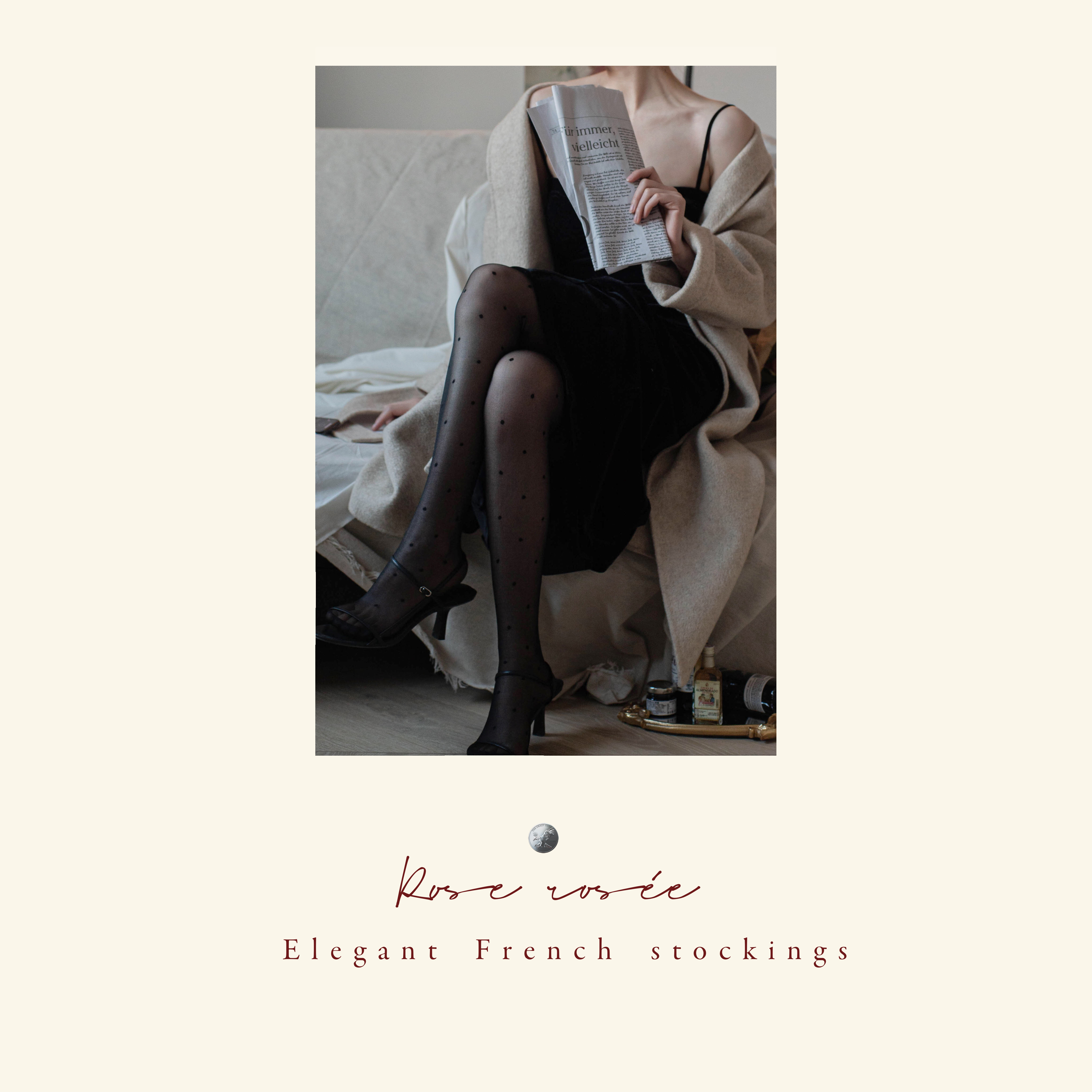 Roserosees French style retro black Podot silk stocking ladies'thin' round point even pants silk stocking matching theorizer