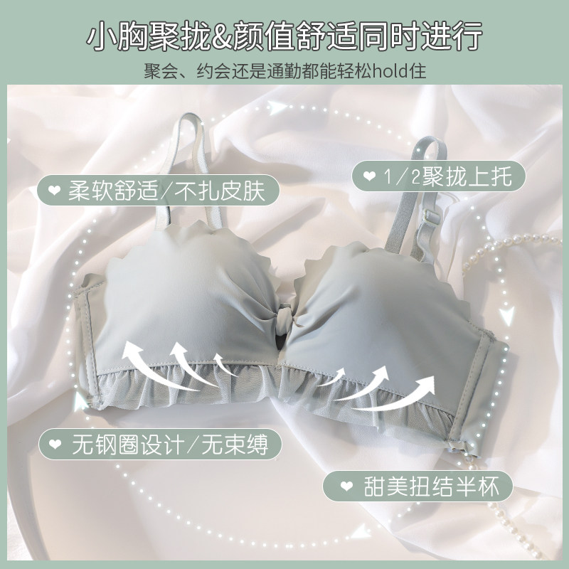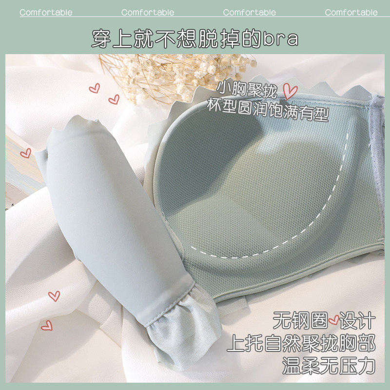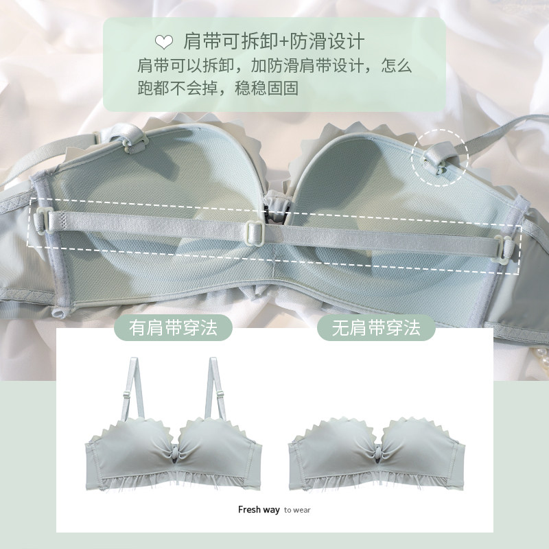 Summer Incognito white strapless girl underwear without rims Small chest thickened flat chest special gathered bra set