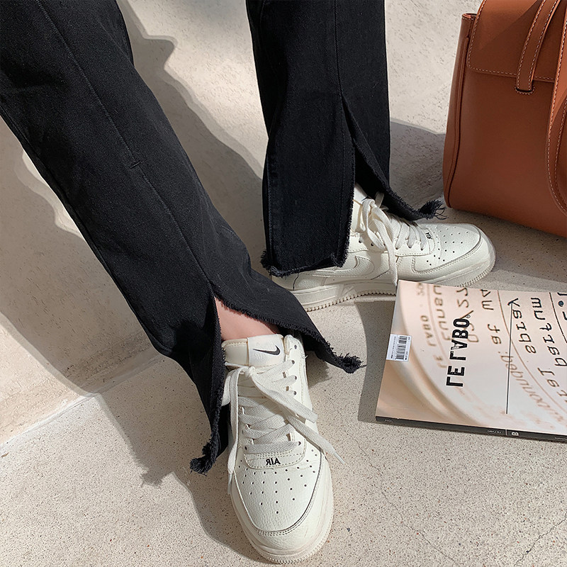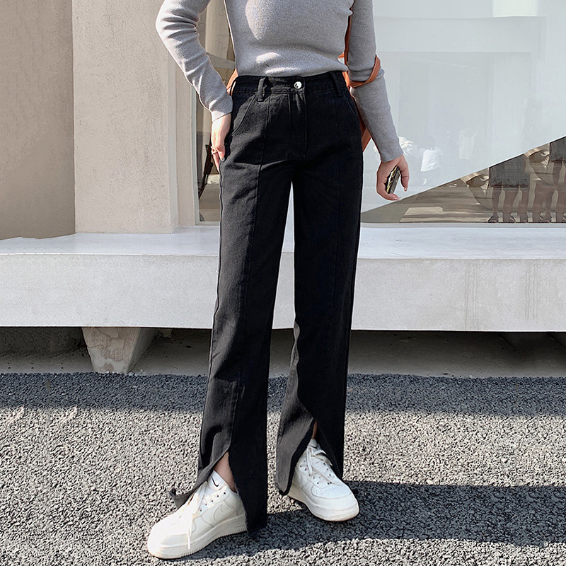 High-waisted micro-flare slit jeans women's spring 2021 new slits show thin wide-leg mopping split pants