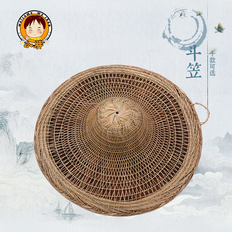 Bamboo weave hat big brim straw hat fishing hat sunshade rain hat stage performance props lampshade decoration retro bamboo hat