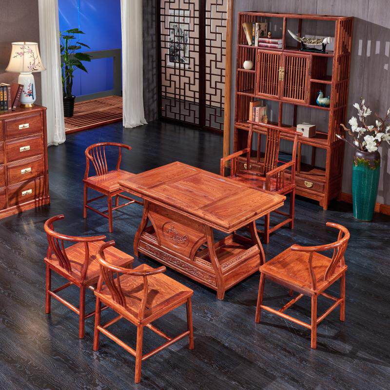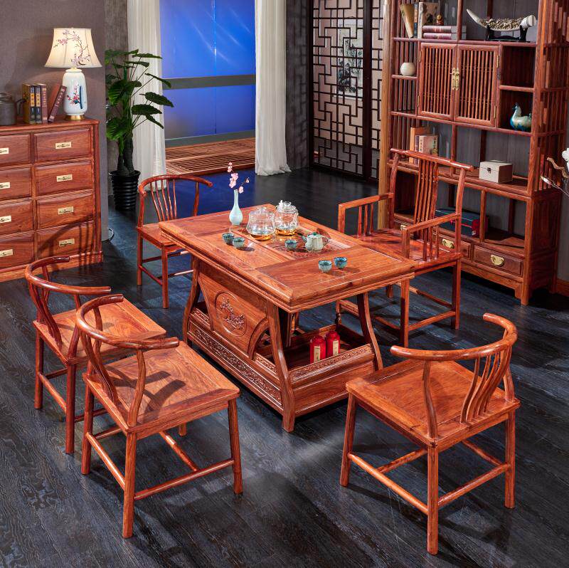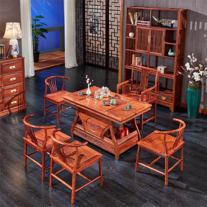Daxiang House Mahogany Yuanbao tea table new doorless hedgehog red sandalwood tea table tea table and chair combination