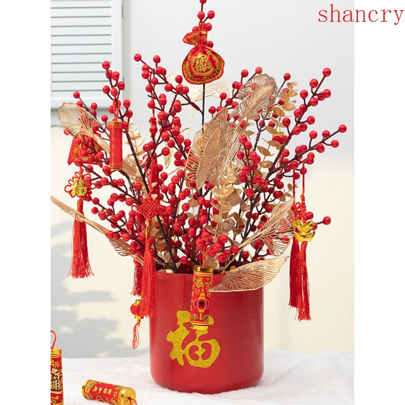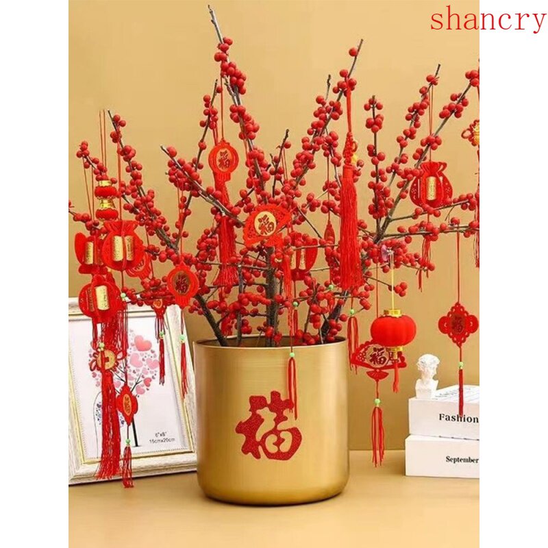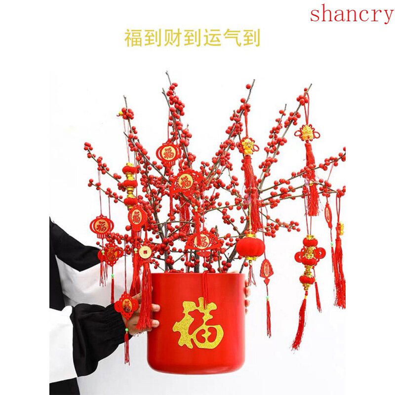 New Year's Blessing Bucket Set Blessing Word Hug Bucket Flower Arrangement Lucky Hanging Ornament New Year's Eve Flower Box Silver Willow Accessories Materials
