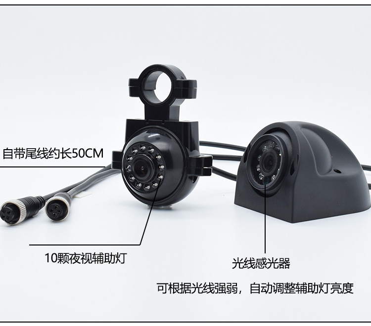 High-definition side camera semi-hanging large truck load monitoring waterproof night vision left and right side blind area monitor 12-24V