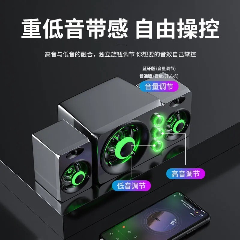 Computer Dedicated Acoustics Lian Desktop Notebook Home High Sound Quality Mini-Speaker Trumpet Small 2 1 Heavy Low Tone Cannon Wired Bluetooth Dual-use Desktop Multimedia Active Wood Influence