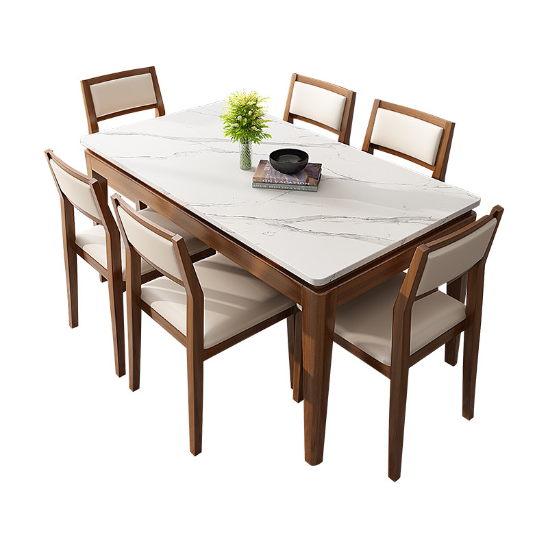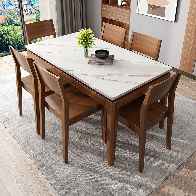Rock plate dining table and chairs combined rectangular solid wood dining table 4 people 6 people dining table 2022 at least table walnuts wood color table