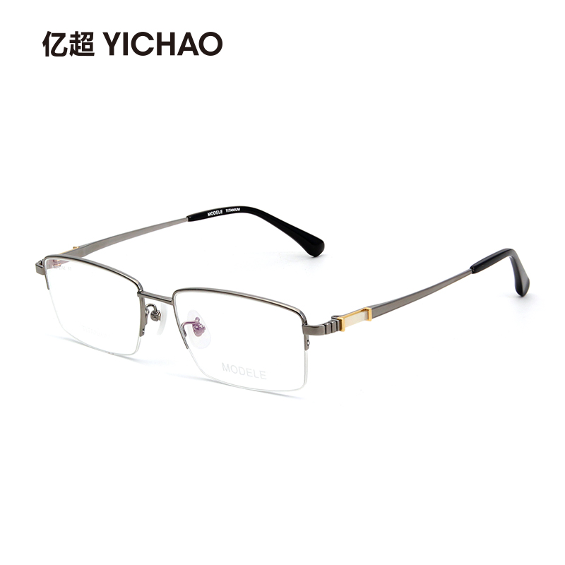 ModeLE designer Pure Titanium Nearsightedness Eyeframe Men's Half Frame Inlaid Jade Retro Fit 12296