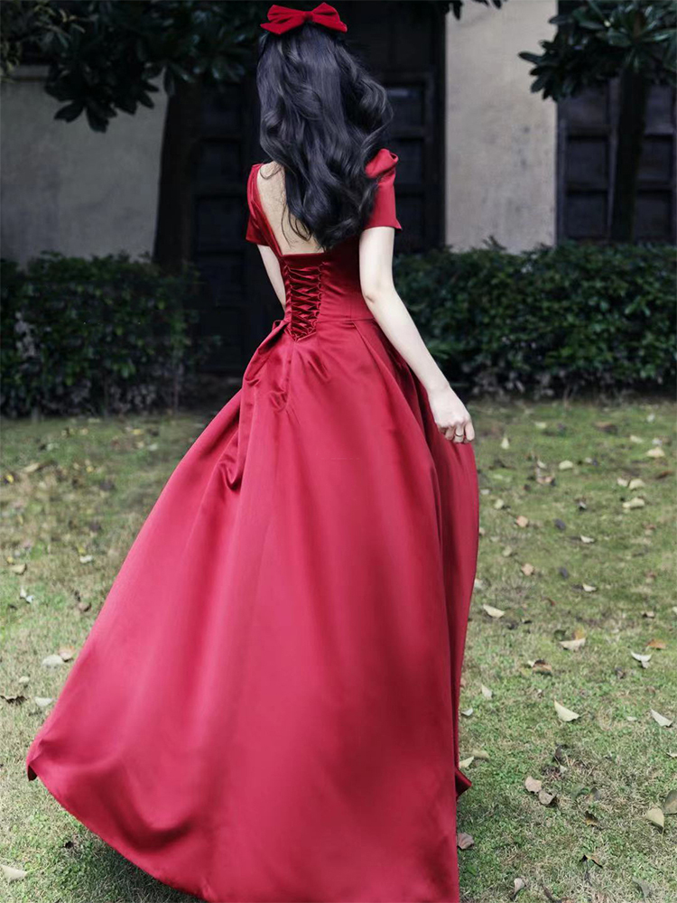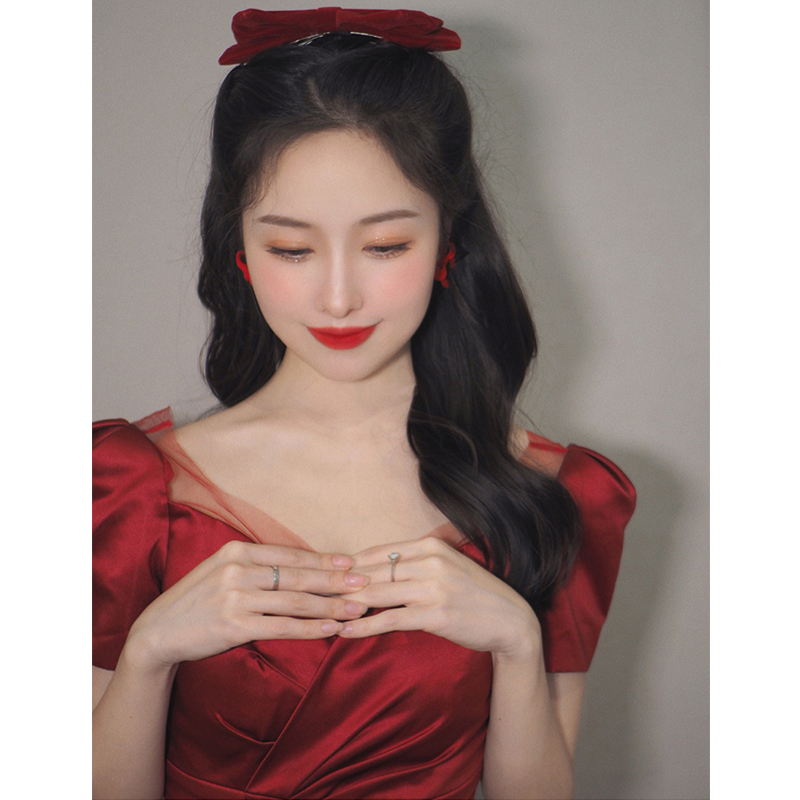 Satin toast dress 2022 new bride wine red wedding engagement dress back door dress female winter long section