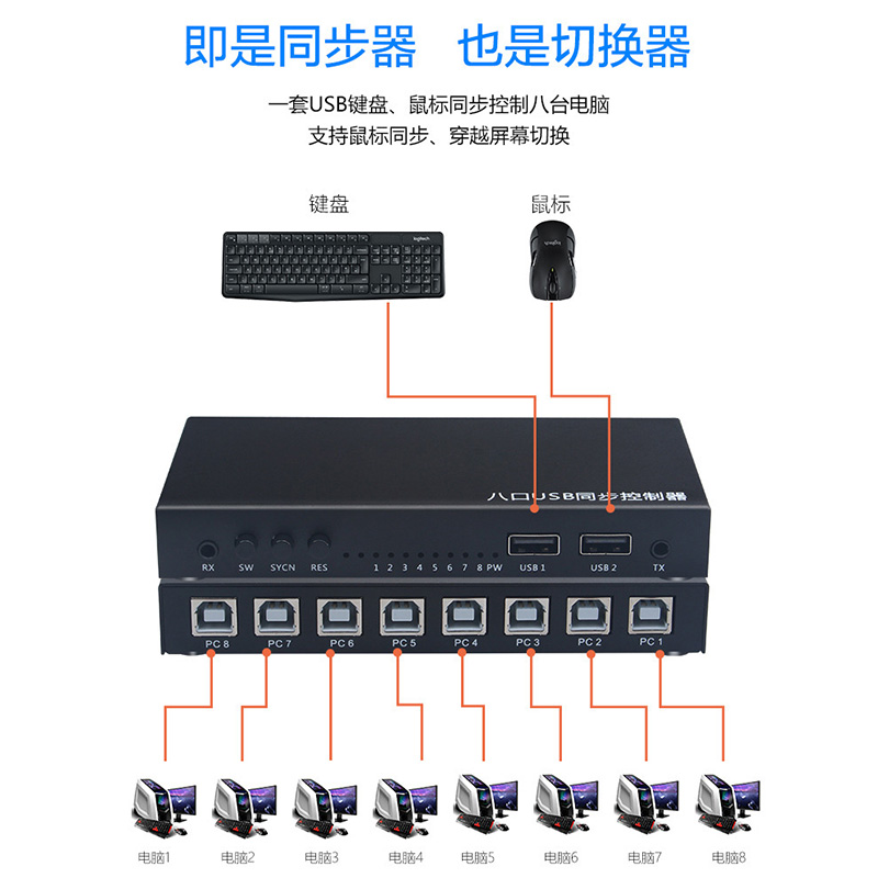 Yue Chuangxing KVM8 port USB synchronous switch shared keyboard and mouse computer dnf dungeon with Warrior 1 control 8