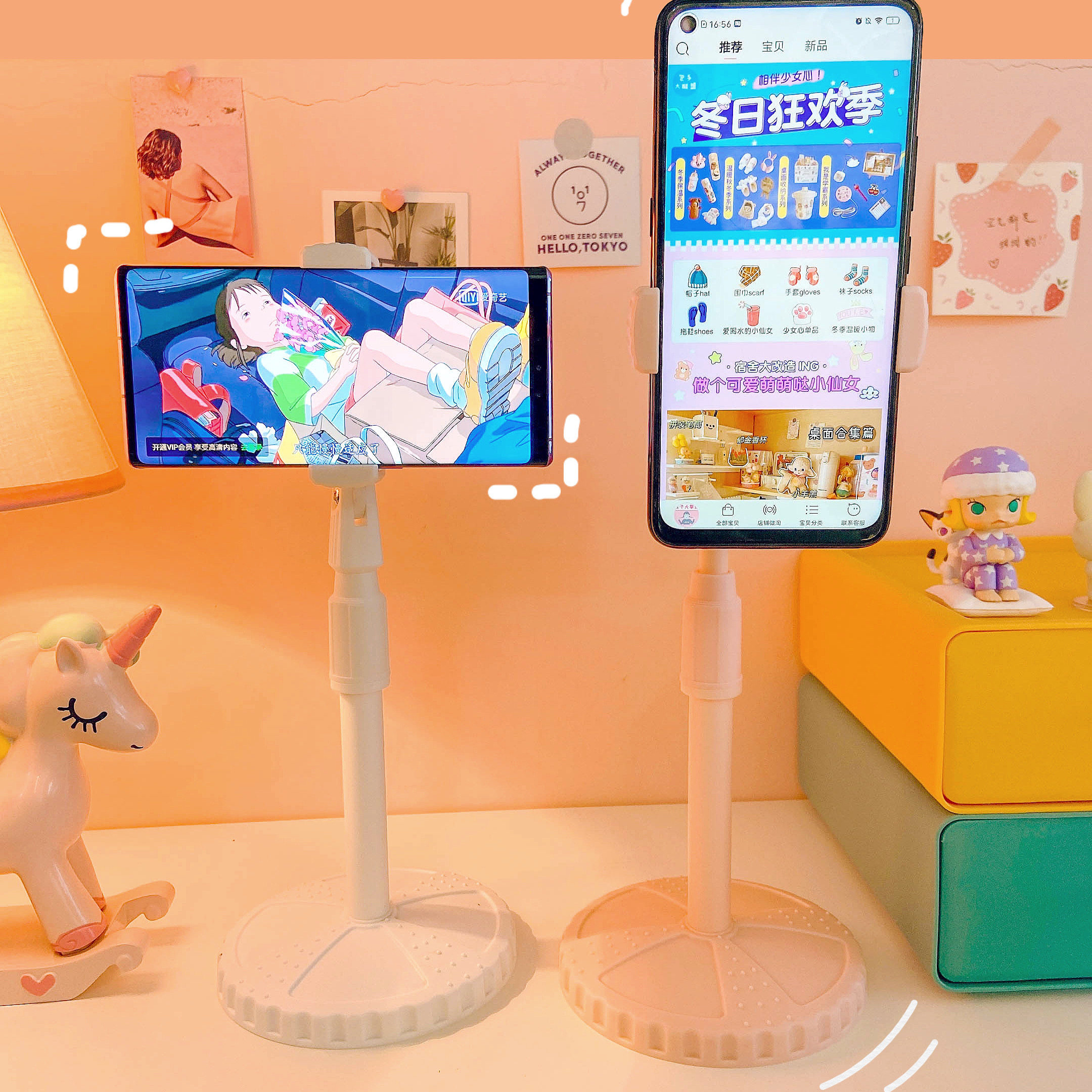 Rotating mobile phone rack * phone with pink rotating phone frame * phone with a white rotating phone frame * phone with a black folding phone rack * adjustable angle height