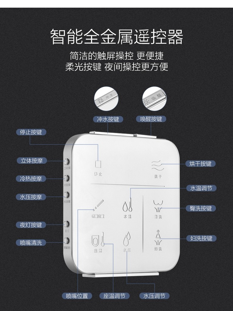Remote Control Drying Water Temperature Conditioning Hip Wash Women Wash Seat Ring Heating Water Pressure Adjustment Nozzle Self-Cleaning Automatic Odor Removal Nozzle Mobile Wash