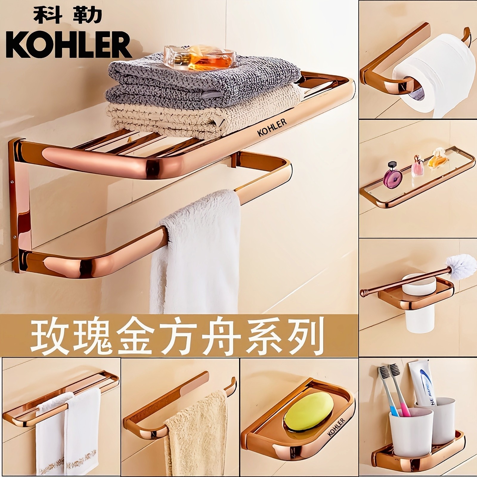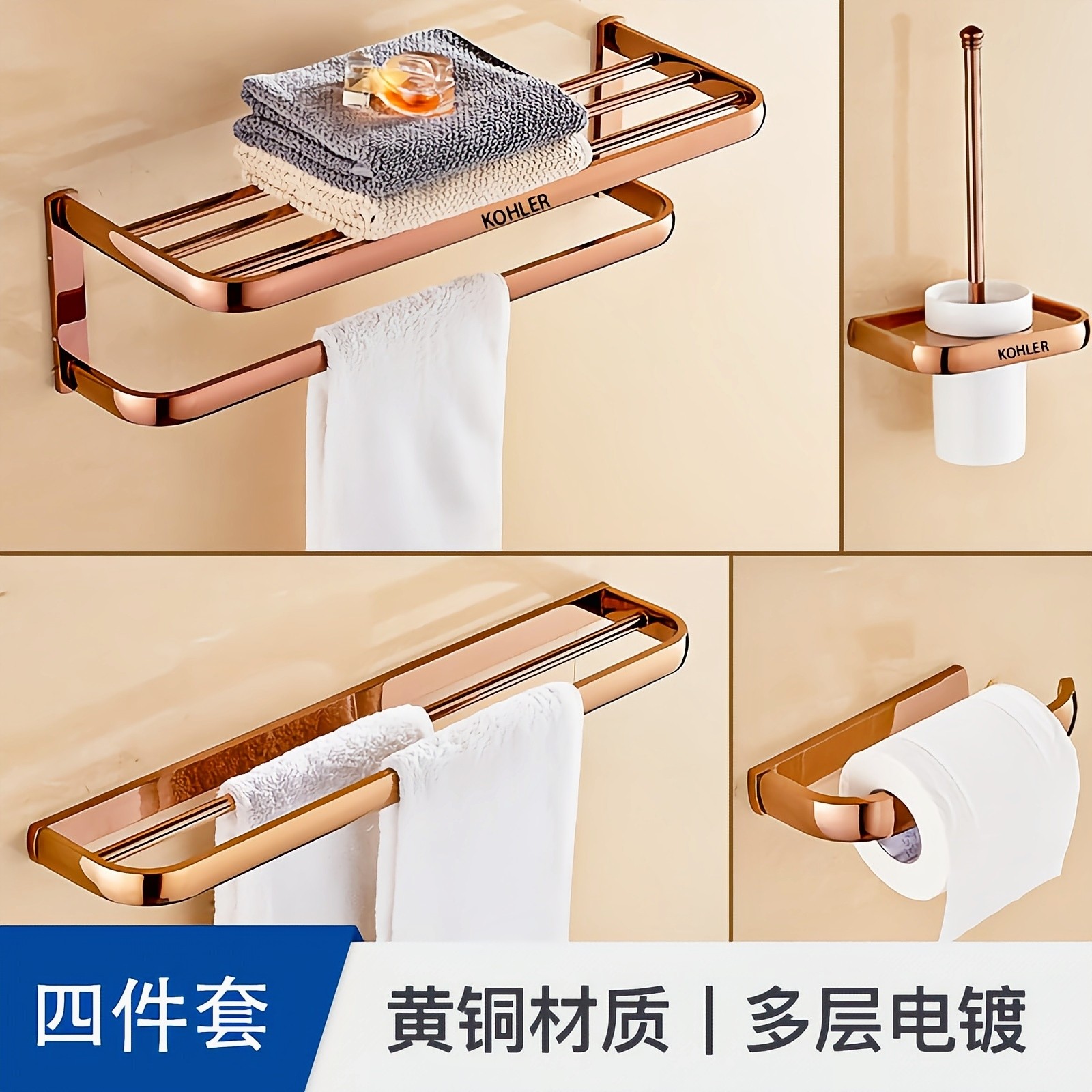 Rose Gold White Yellow Camel Gray Rose Gold - Bath Towel Holder 50 58 5cm Rose Gold - Double Rod 50 57cm Rose Gold - Single Rod 50 57cm Rose Gold - Double Cup Toothbrush