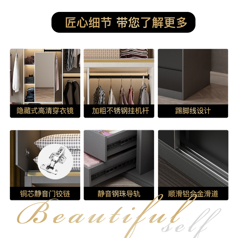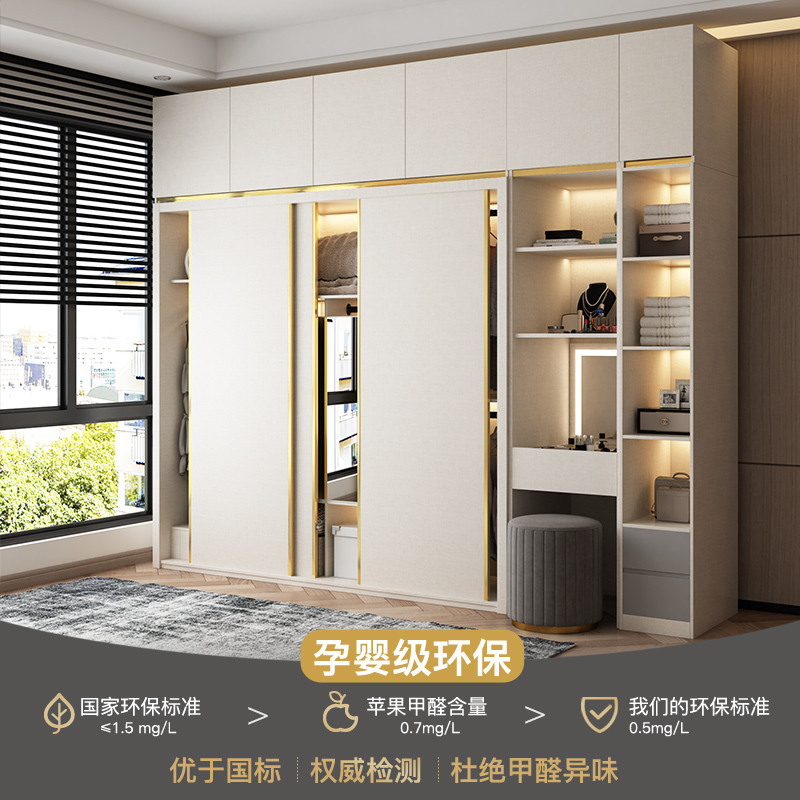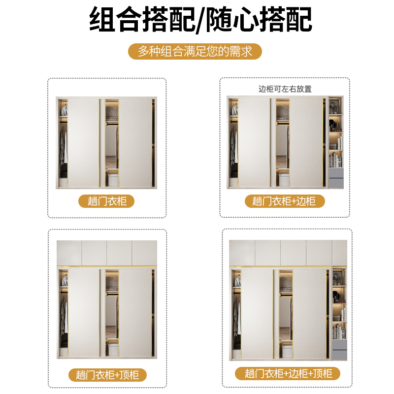 Sliding door wardrobe home bedroom white light luxury sliding door Nordic overall storage sliding door wooden large wardrobe