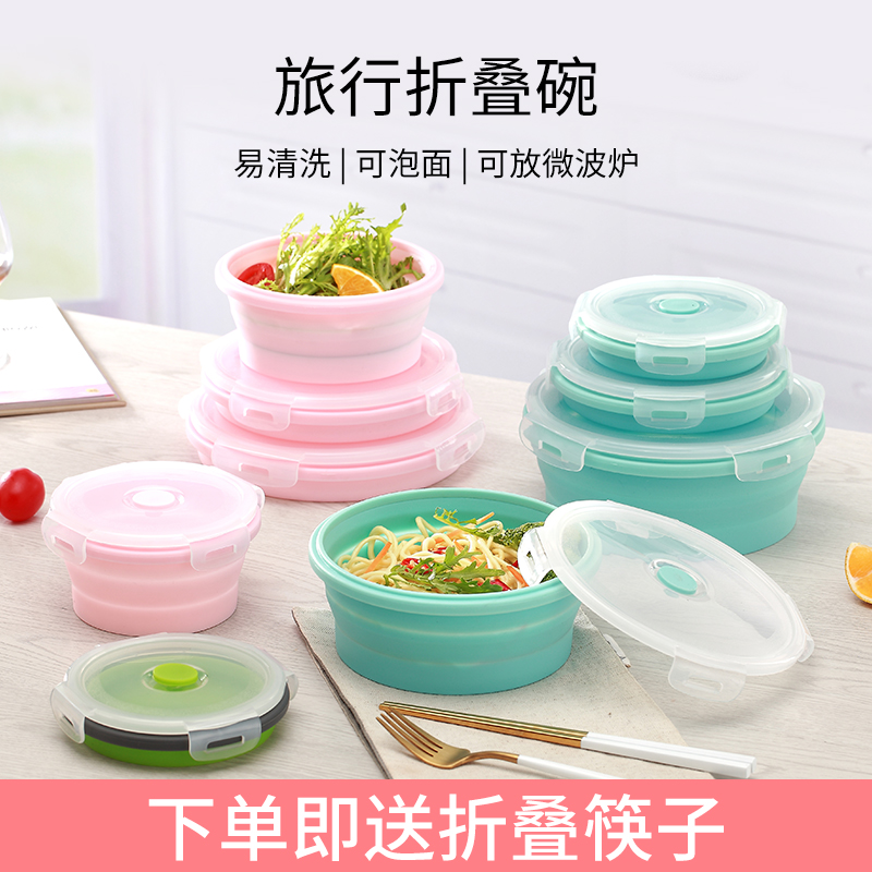 Internet celebrity travel silicone folding bowl high temperature resistant portable lunch box office worker tableware picnic picnic supplies instant noodle bowl