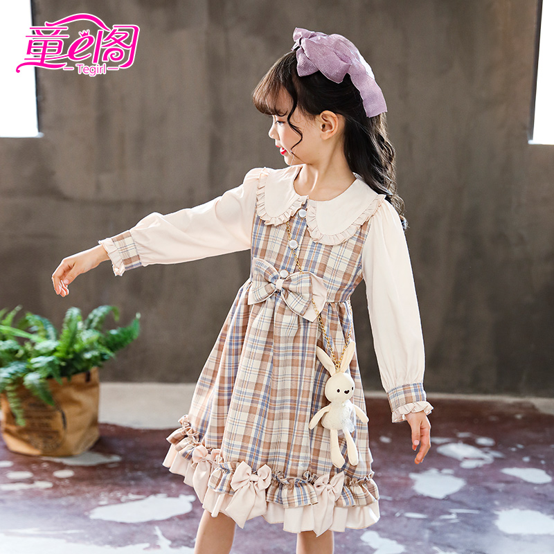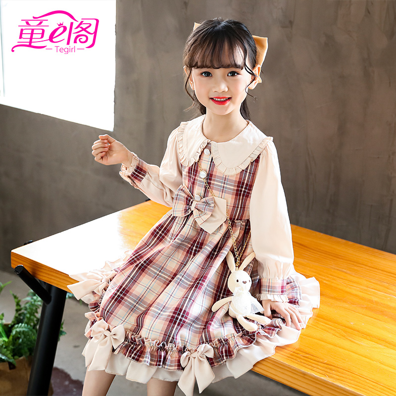Girls long sleeve dress in the big boy foreign princess skirt 2022 spring new children Lolita skirt Korean version