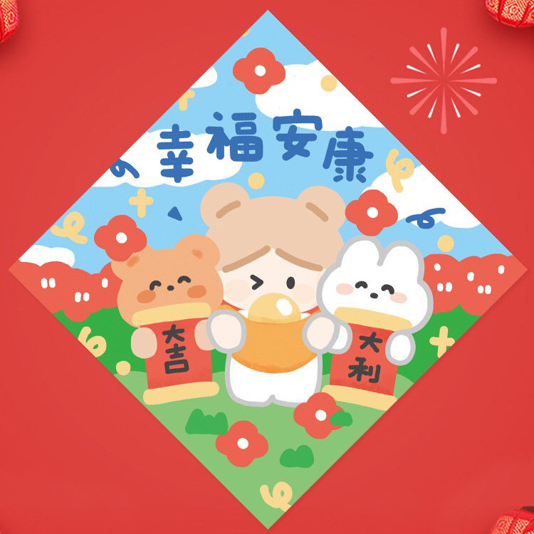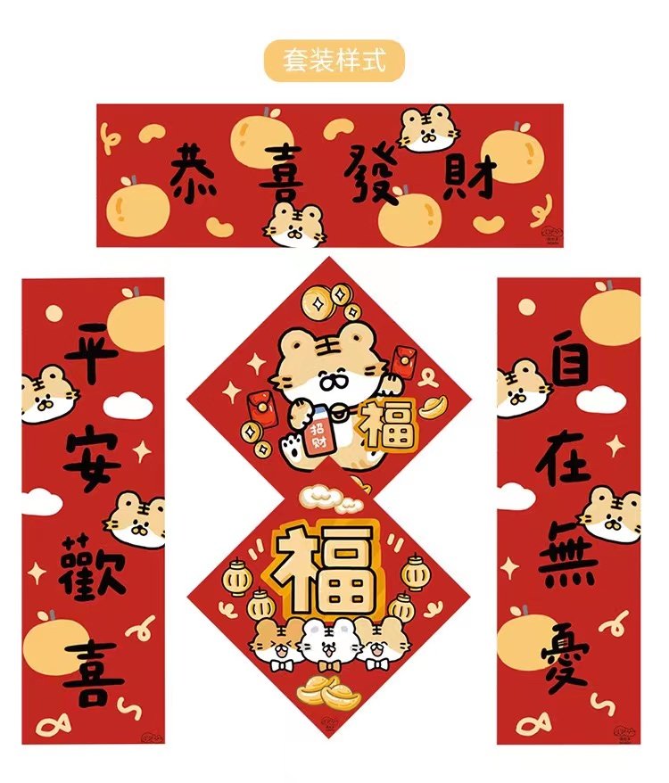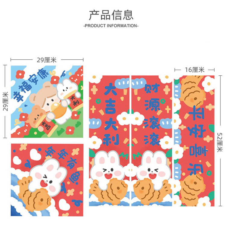 Two kinds of blessing characters, one pair of couplets, 2 red envelopes, more than every year, happiness and well-being, and a couplet, cartoon blessing red envelopes, 10 cartoon blessing red envelopes, 2 cartoon blessing red envelopes, 10 non-marking stickers (200 grains)