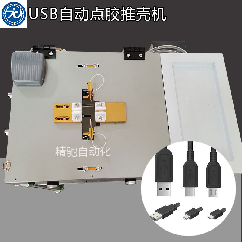 Fully automatic USB dispensing and shell pushing machine semi-automatic pedal manufacturer Shenzhen single and double station Apple Android data cable