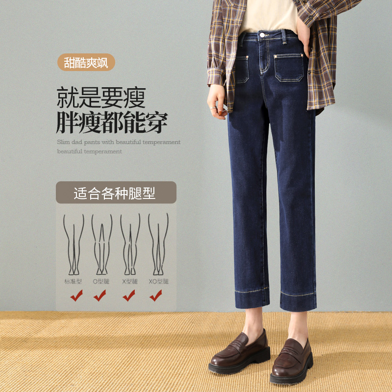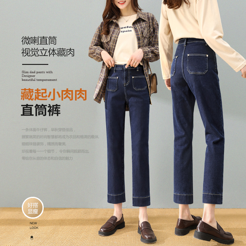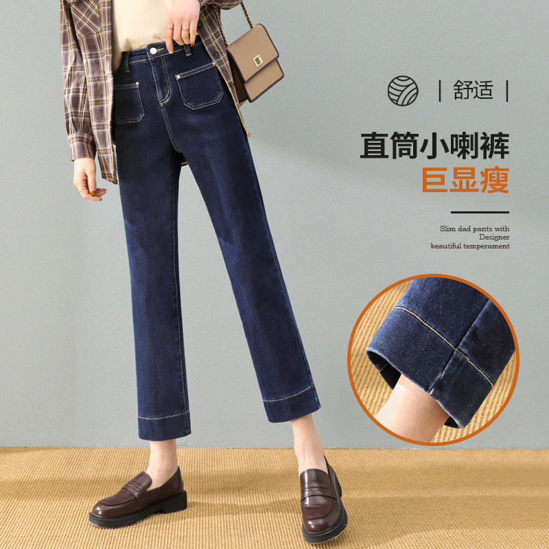 Micro Trumpeter Pants Woman High Waist Summer 2022 New Straight Silo Loose Little Guy 90% Deep Blue Horn Pants
