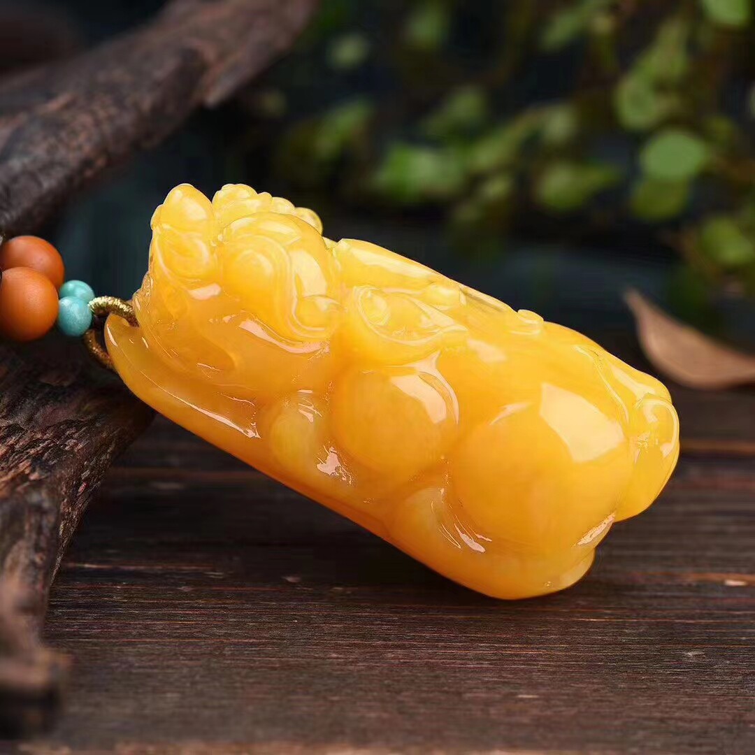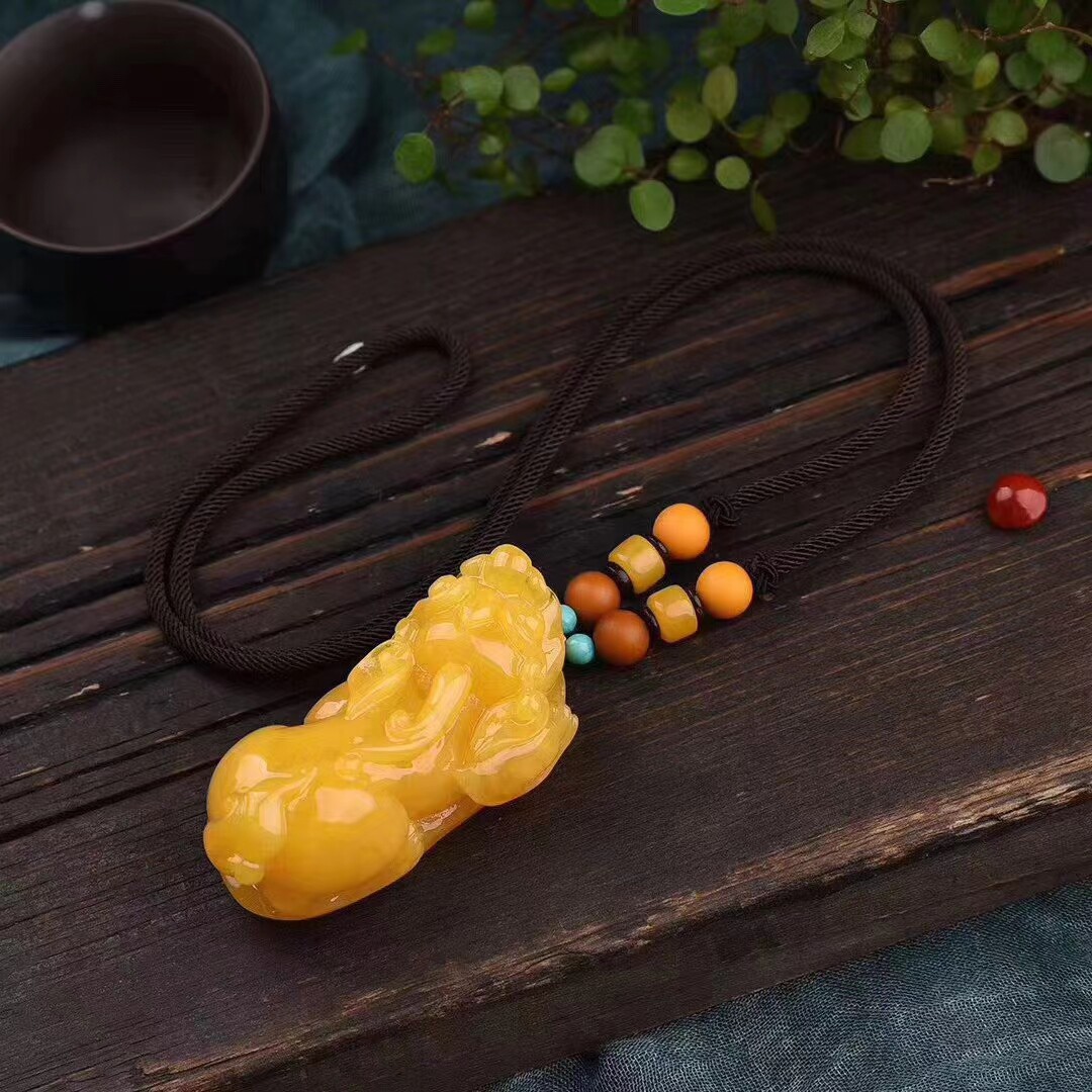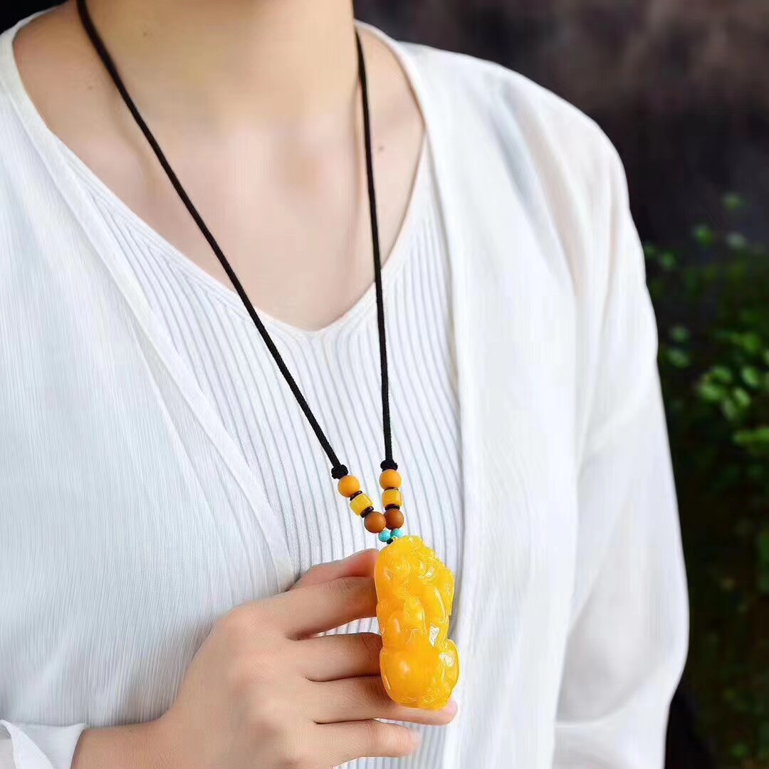 Natural Russian-made nectar wax Pendant Pendant Engraving Amber Raw Stone Sweater Necklace Blood Perks With a Pendant Piece of Jewelry