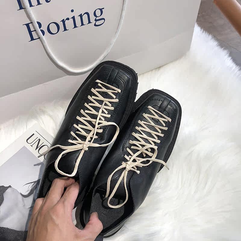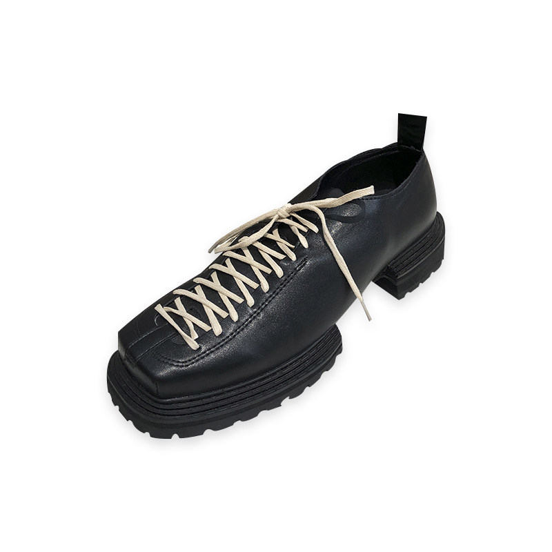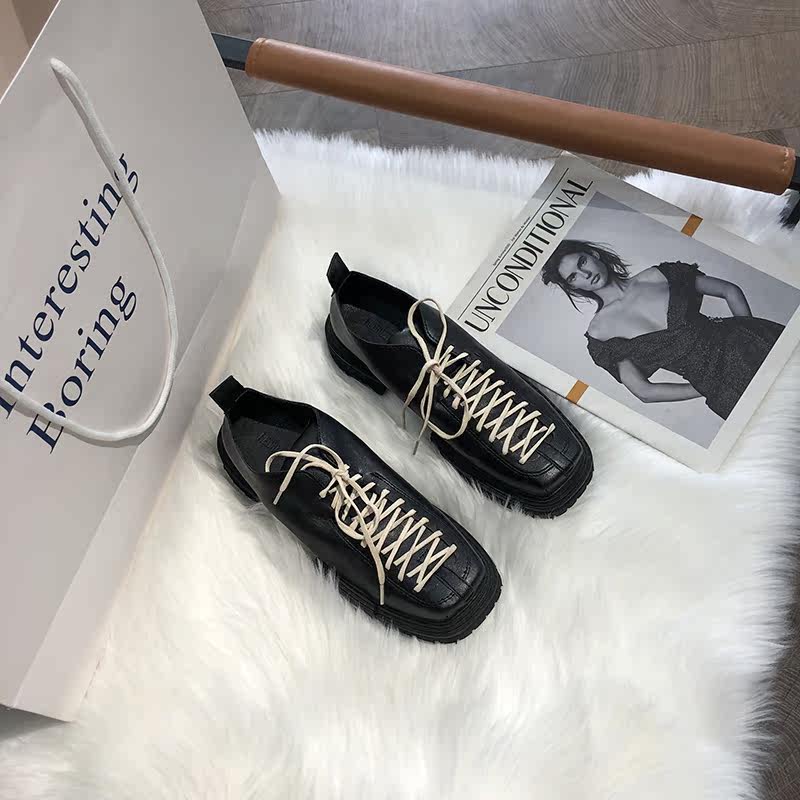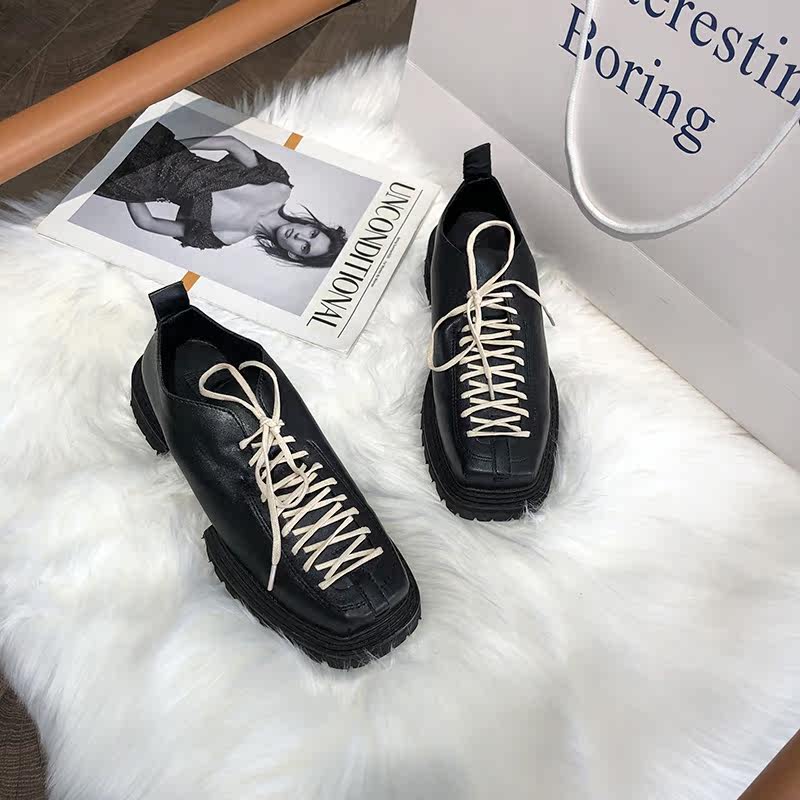Fengfan same style small leather shoes women's 2022 new square toe retro platform shoes thick heel British style black lace-up shoes
