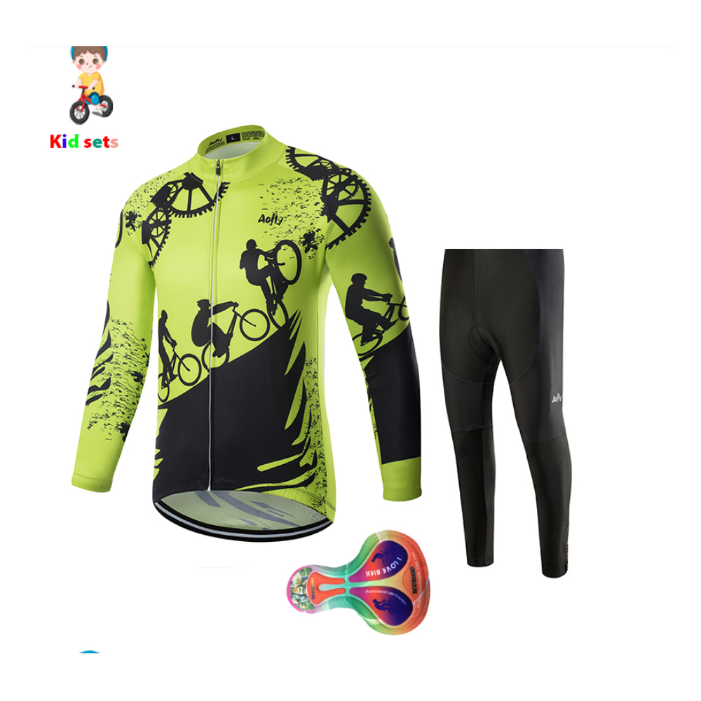 Autumn and winter cycling suit long-sleeved fleece suit boys and children suit balance wheel skating suit team road bike trousers