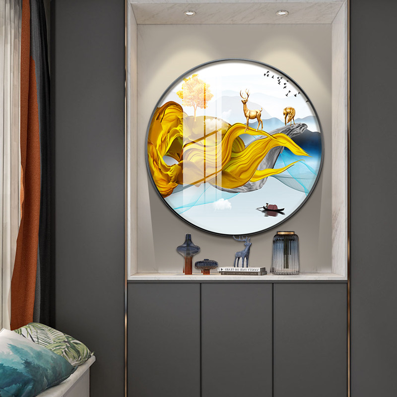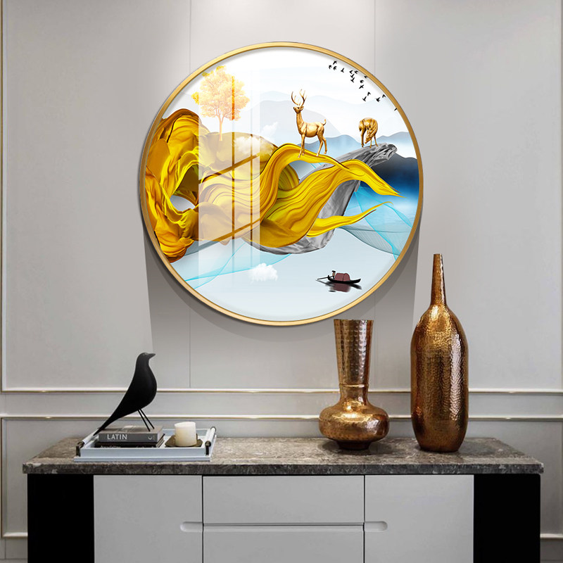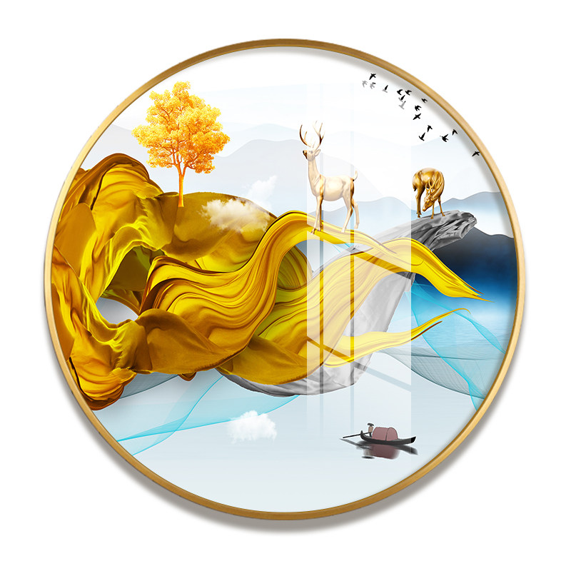 Living room decorative painting Nordic light luxury elk sofa background wall round creative mural atmospheric porch dining room hanging painting