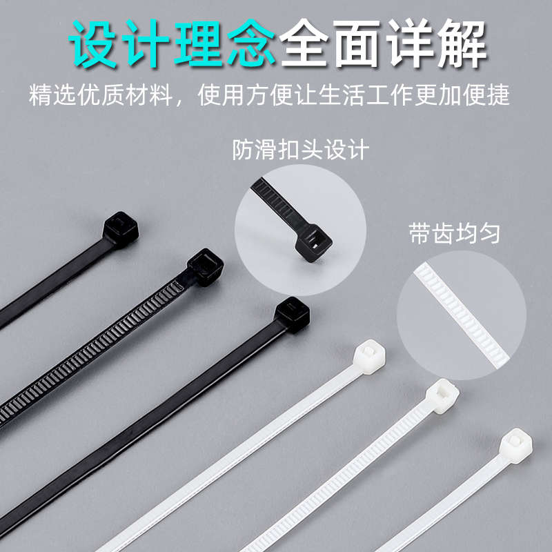 Self-locking nylon cable tie 3×80 plastic black and white buckle strong fixer width 1 8mm 1000 pieces