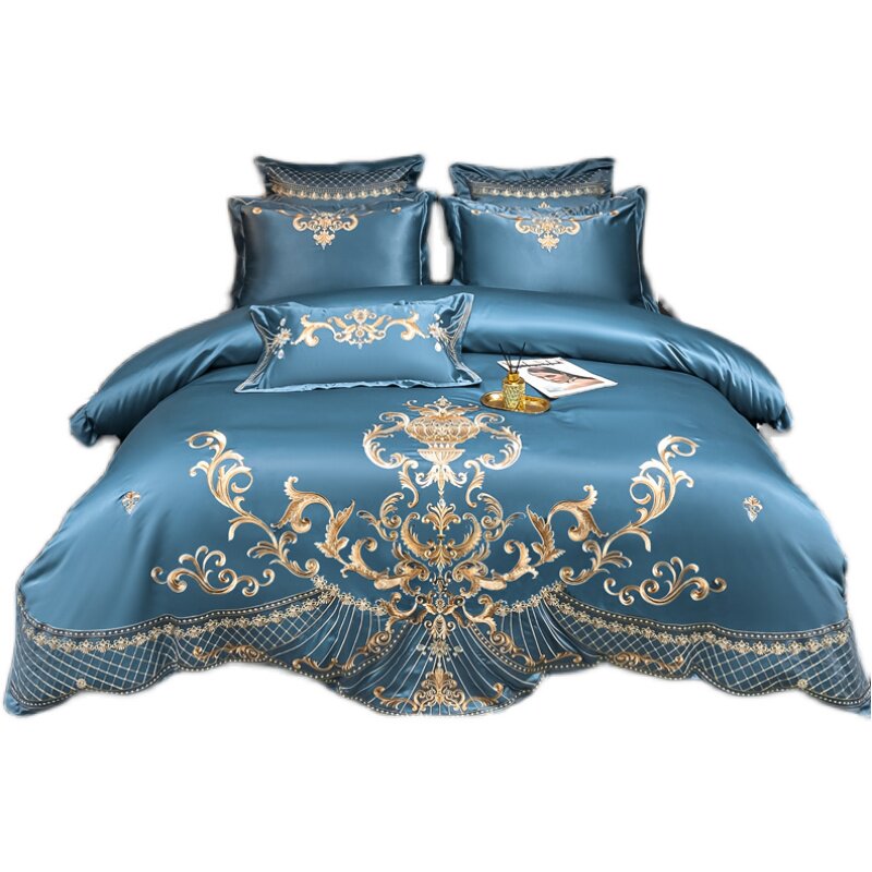 Style light extravaganza Sophisticated Genuine Silk Pure Cotton Four Pieces All-cotton Embroidered Quilt Cover Euro Style Bedding 1 8m Bed Hat
